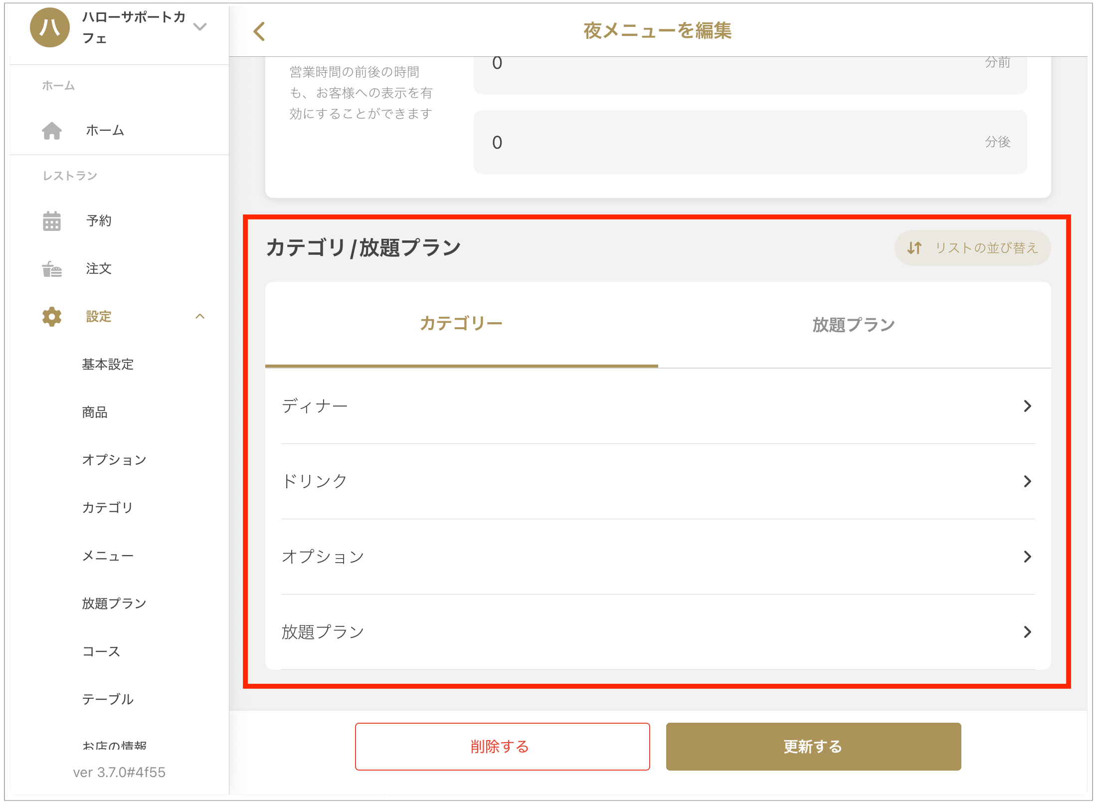 カテゴリについてはこちら → 【カテゴリ管理・設定】 - メニューは「営業時間」に紐付いて登録されます。