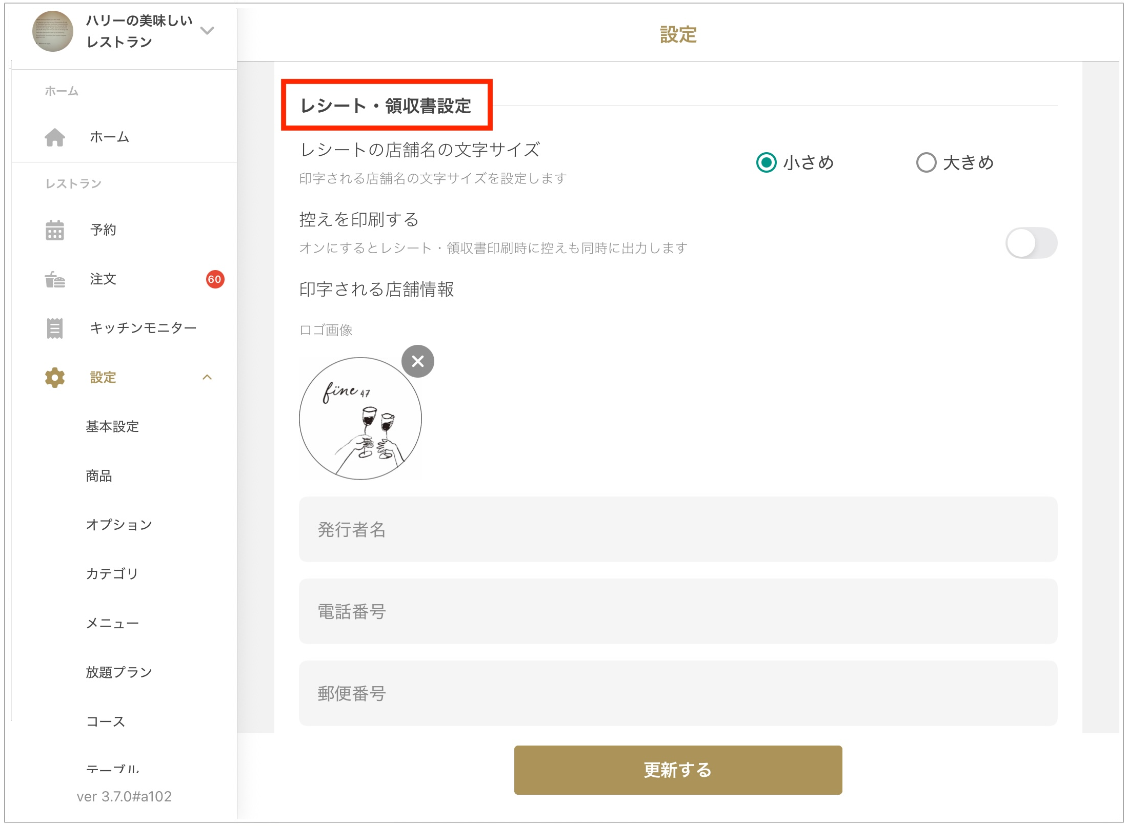 ※画面下部の「更新する」ボタンを押すことで反映が保存されます。