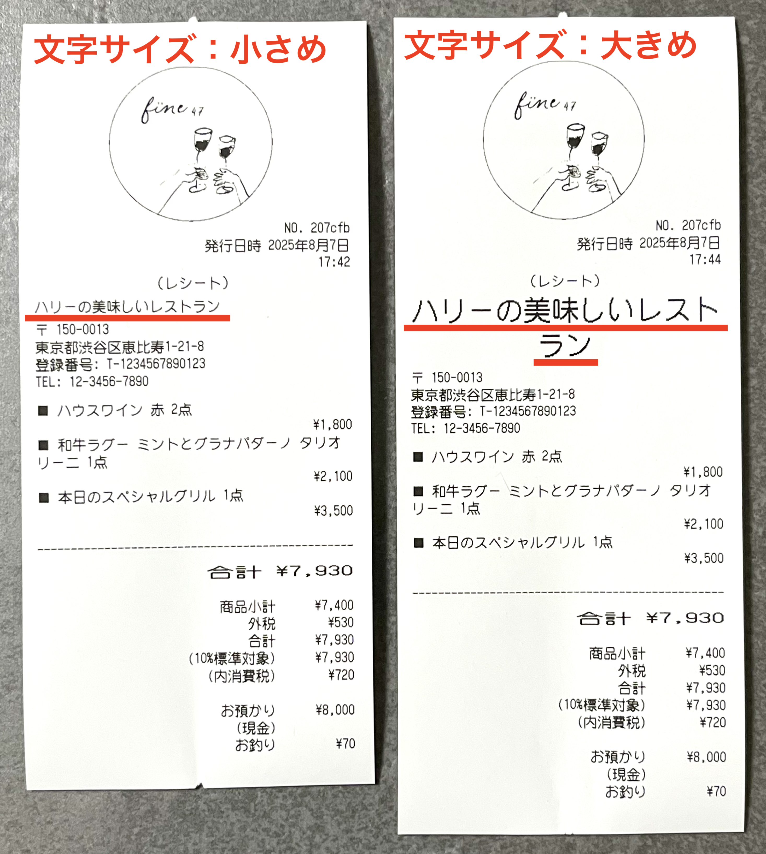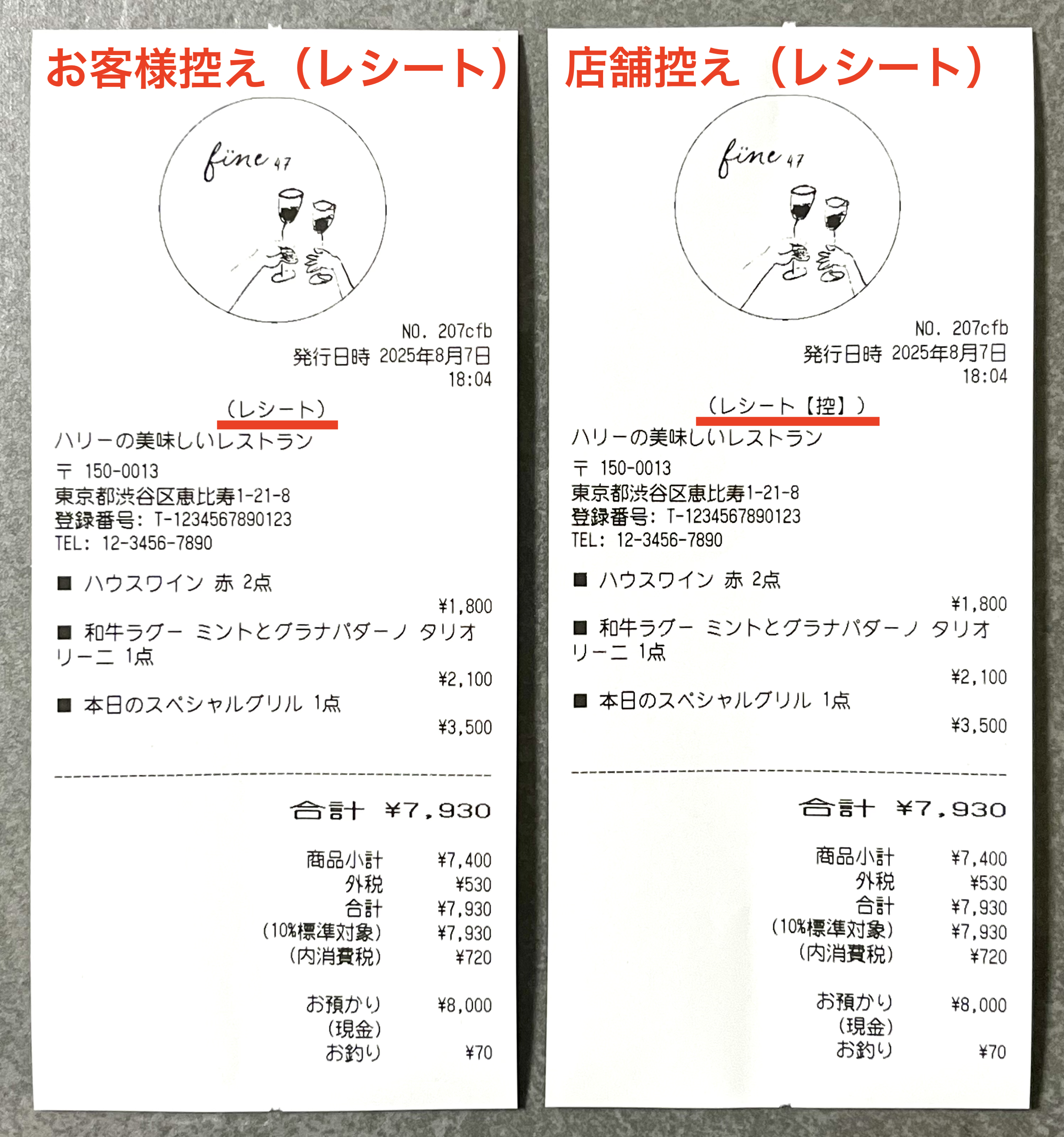 ※レシート番号はシステムで自動的に採番されるIDであり、レシートに関するトラブルがあった際に、該当のレシートを識別するためのものです。
