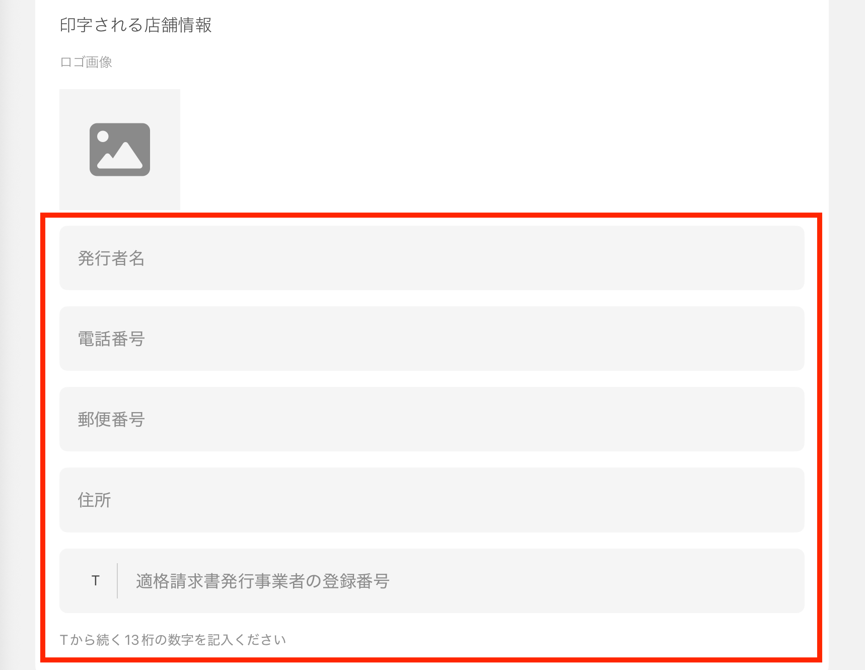 レシート・領収書共通のロゴ画像をはじめ、発行者情報を編集できます。