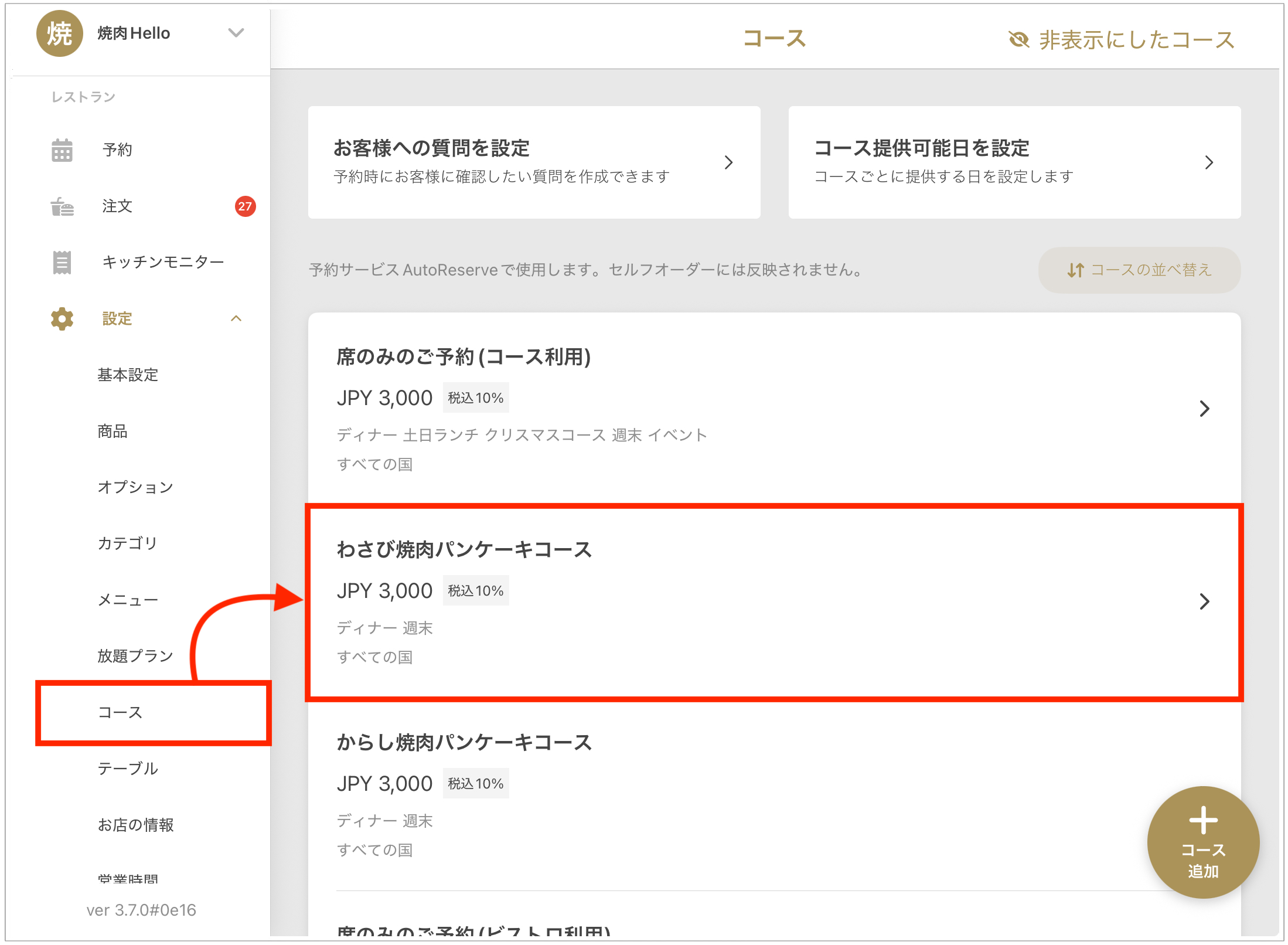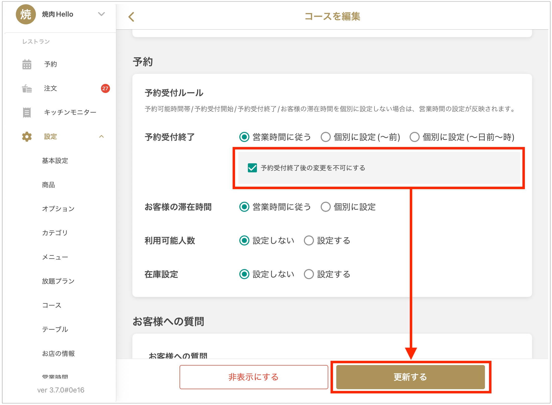※コースの予約受付終了の日時設定についてはこちら