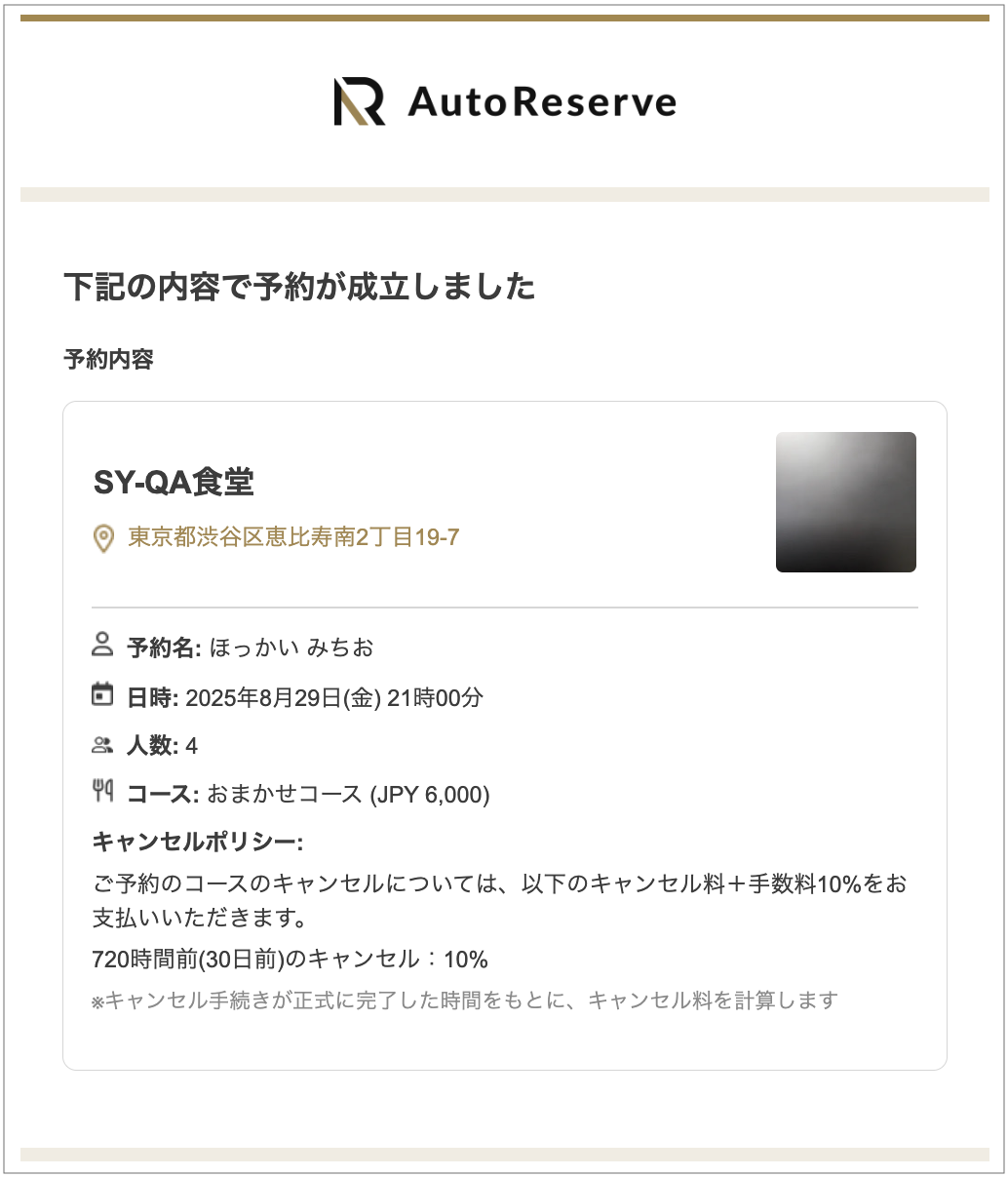 予約完了時には、以下のようなメッセージがお客様宛に届きます。