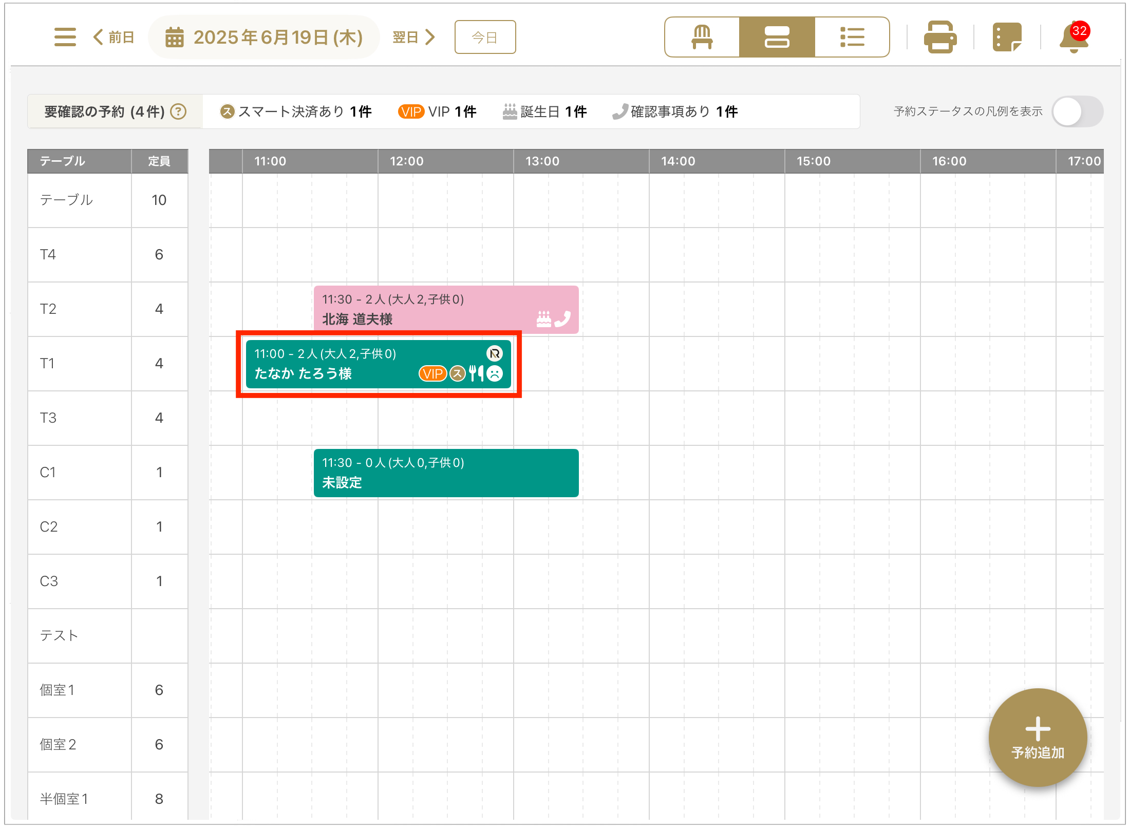 「未確認」「確認済み」ステータスを活用することで、来店前の確認状況を一目で把握でき、スムーズな予約管理につながります。