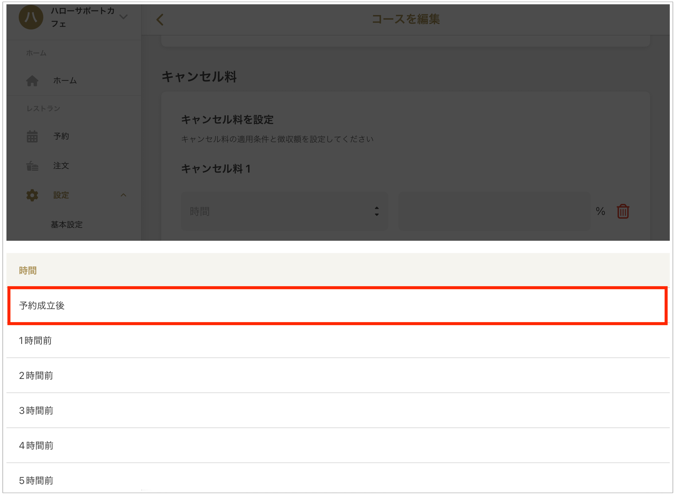 このたび、コースのキャンセル料設定において、キャンセル料発生のタイミングを「予約成立後」に設定できるようになりました。