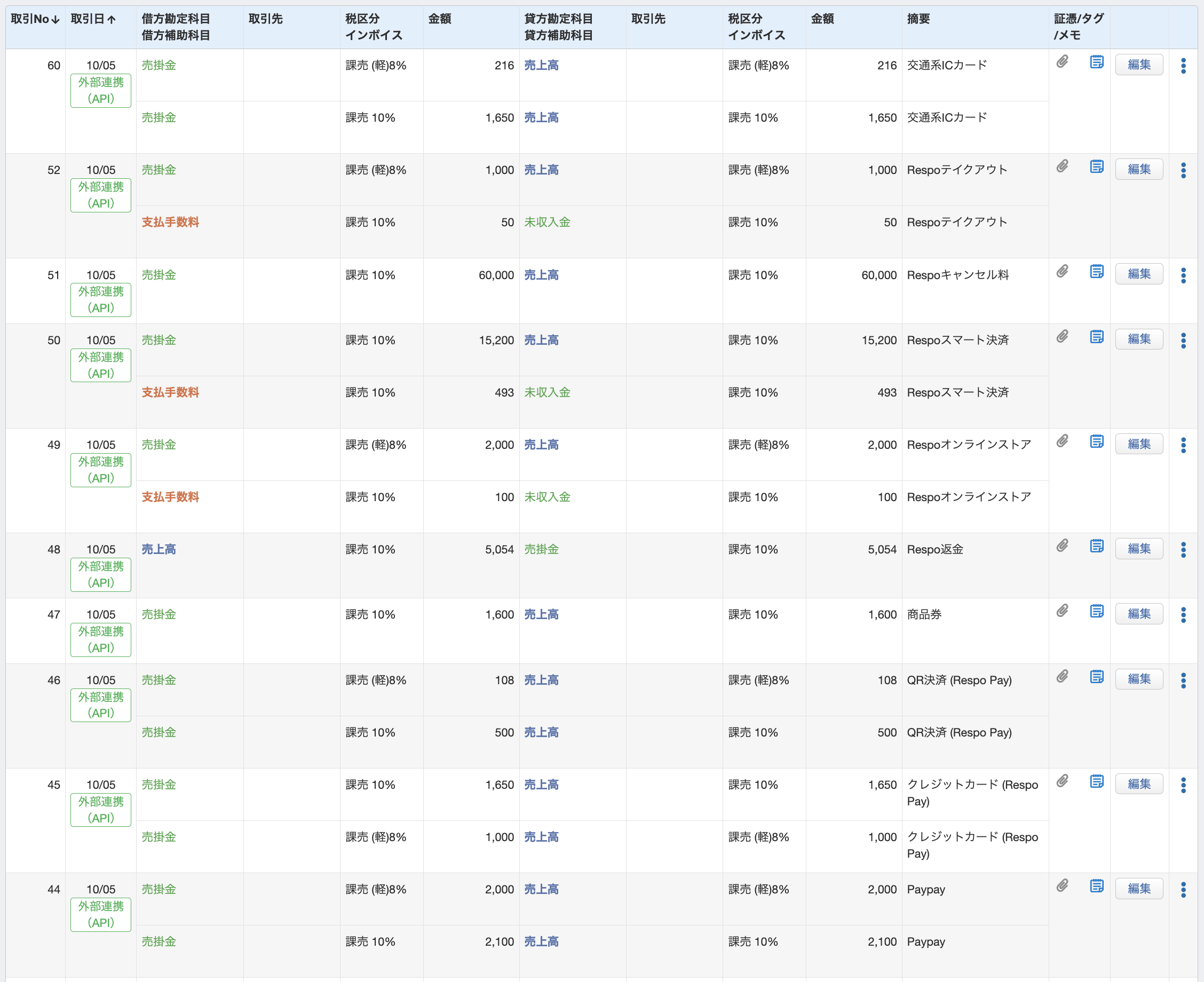 Respoとマネーフォワードを連携する前の取引データは自動で反映されません。