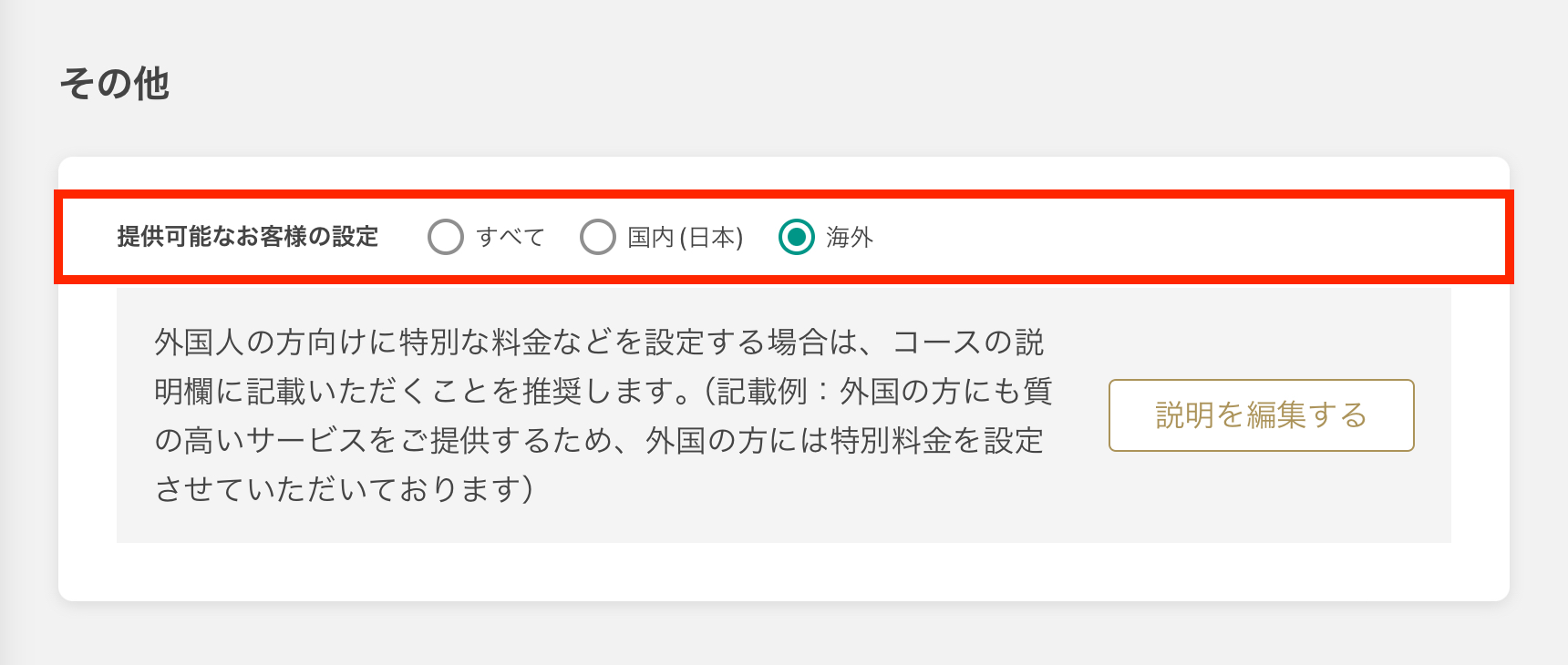 **「외국인(해외)에게 제공하는 코스」**를 나누어서 설정할 수 있습니다.