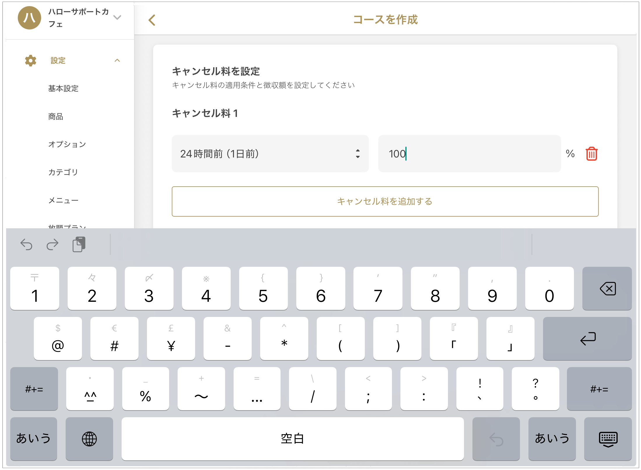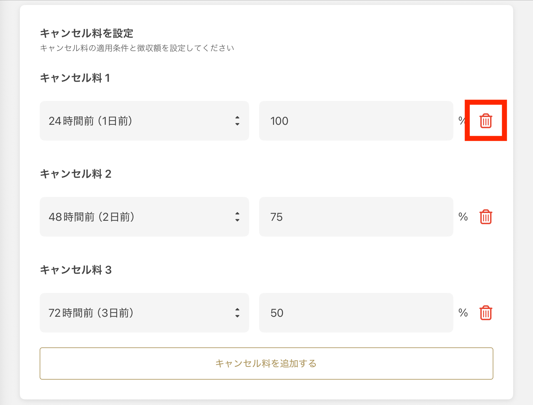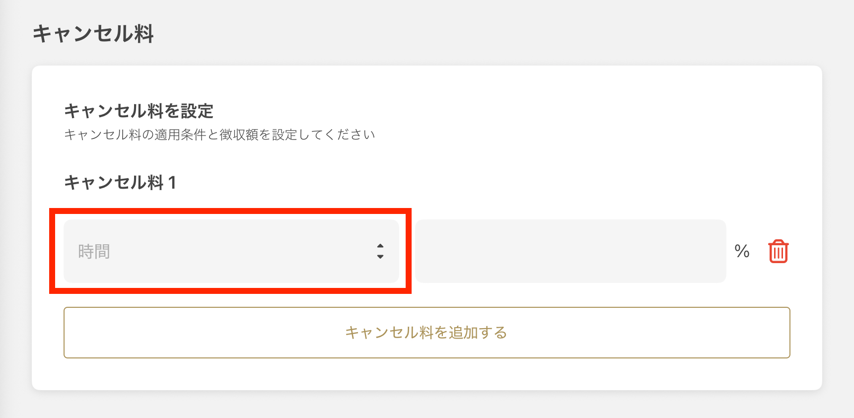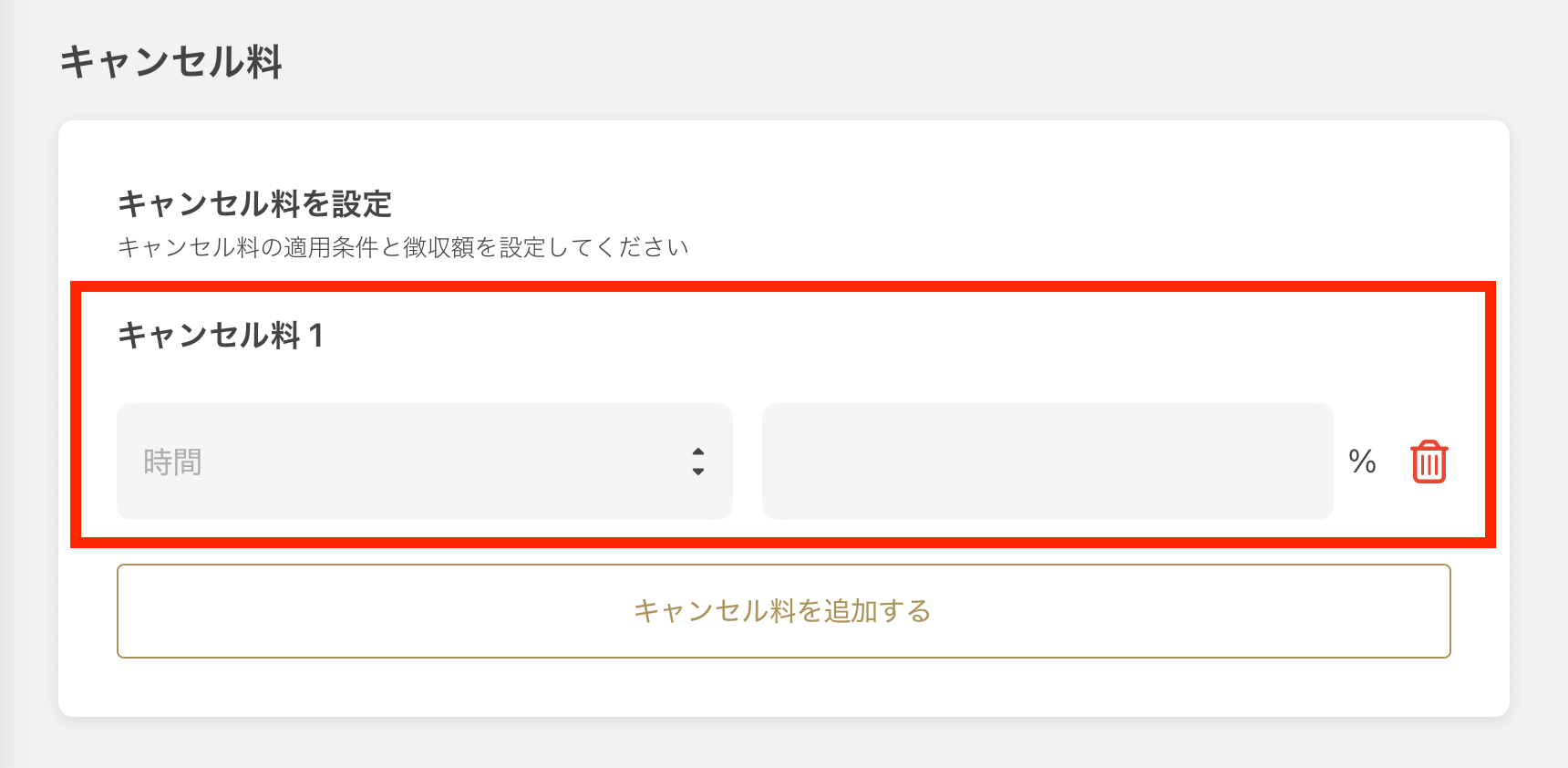 - 「취소 수수료를 추가하기」를 선택합니다.