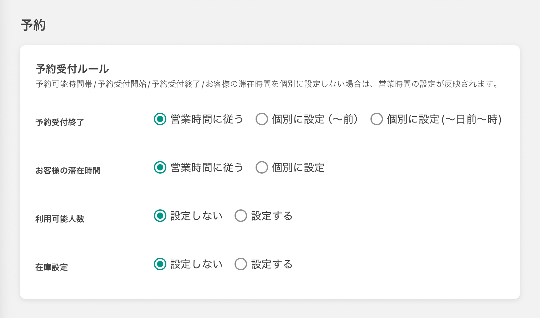 - 예약접수종료 예약접수를 마감하는 시간을 설정합니다. (예: 전일の22시까지)