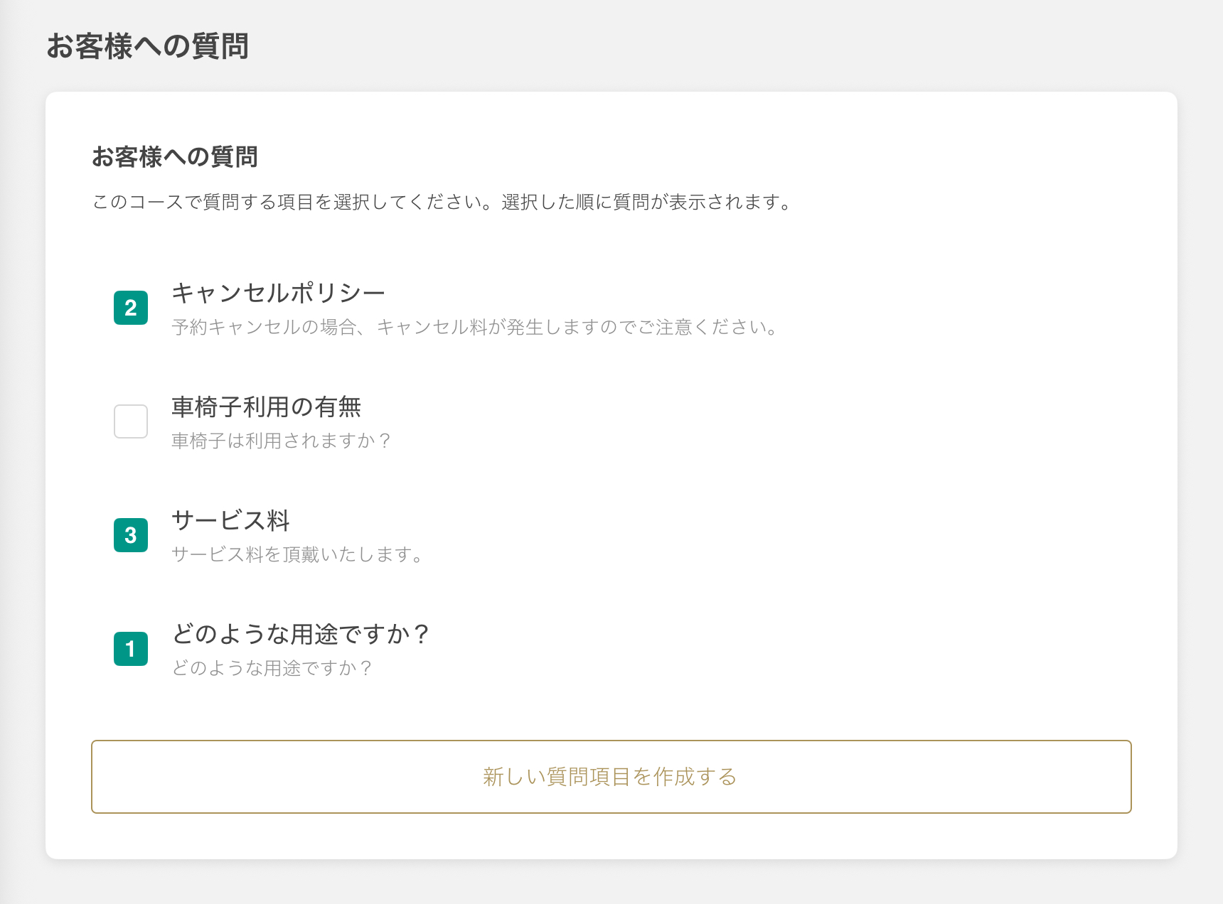 체크한 순서에 따라 게재 순서의 번호가 정해지고, 예약페이지에 번호순으로 질문이 정렬됩니다.