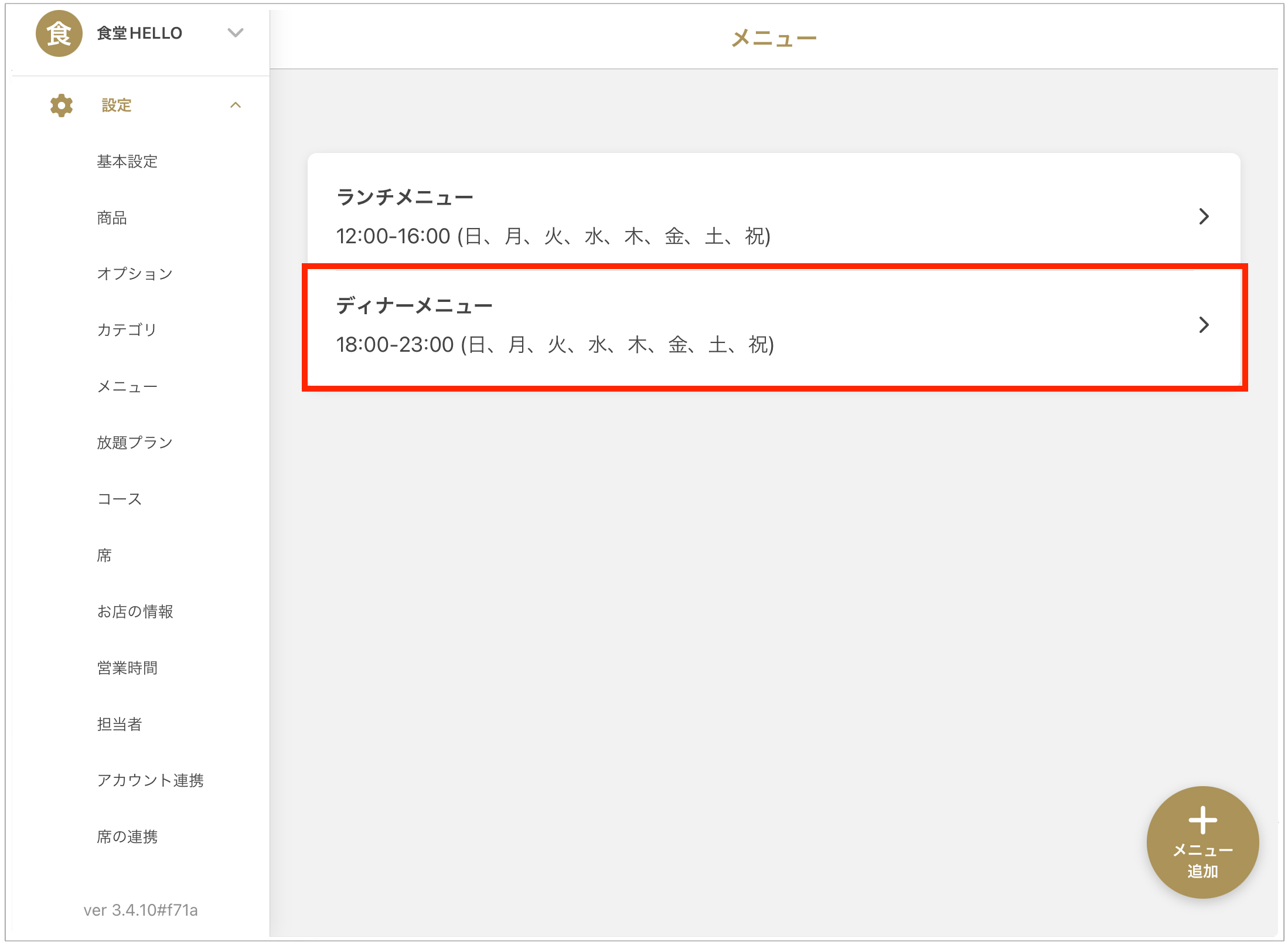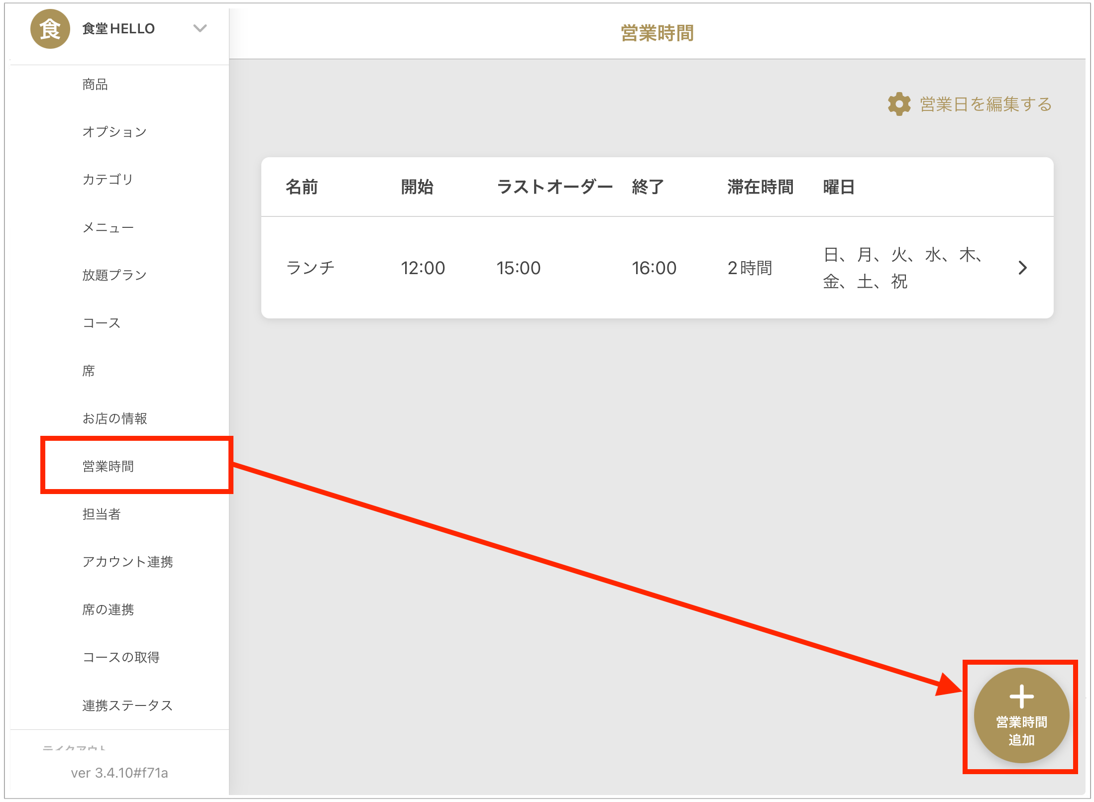 - 「레스토랑」>「설정」>「영업시간」을 선택합니다.